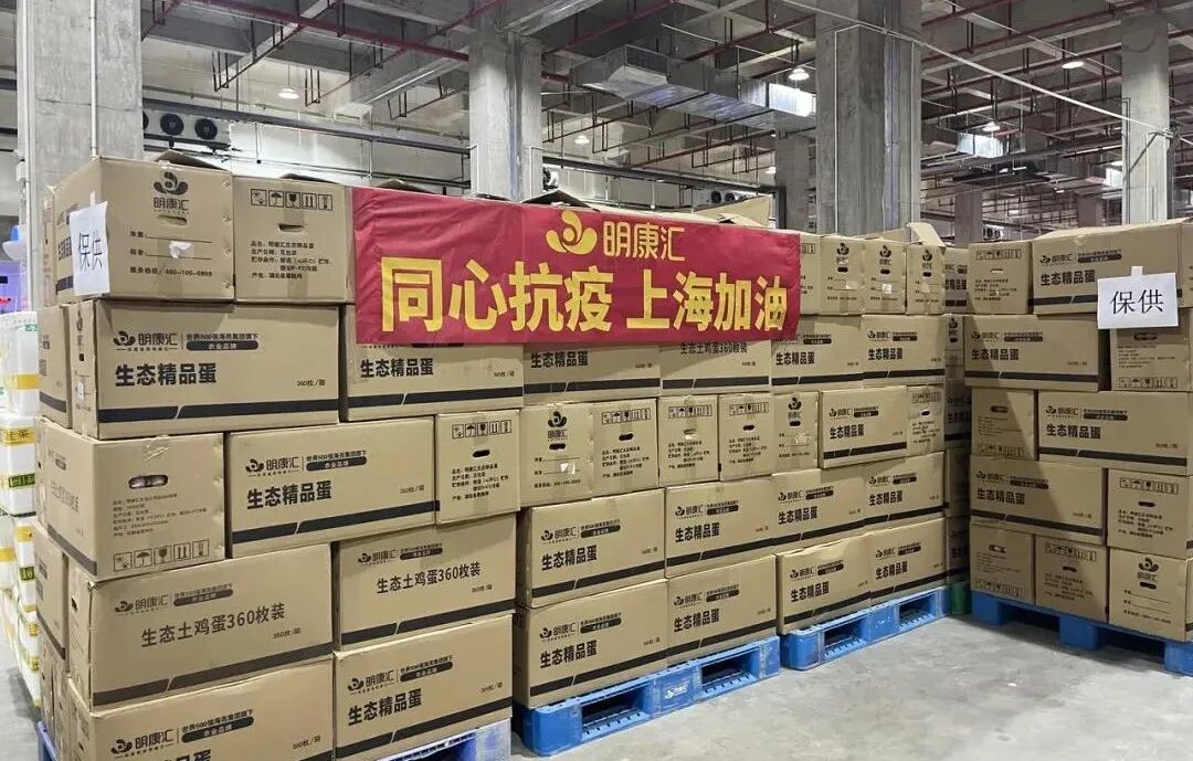 2022年,明康汇作为疫情防控生活物资重点保障企业,为上海、杭州、绍兴等地居民配送保供物资超550万份,